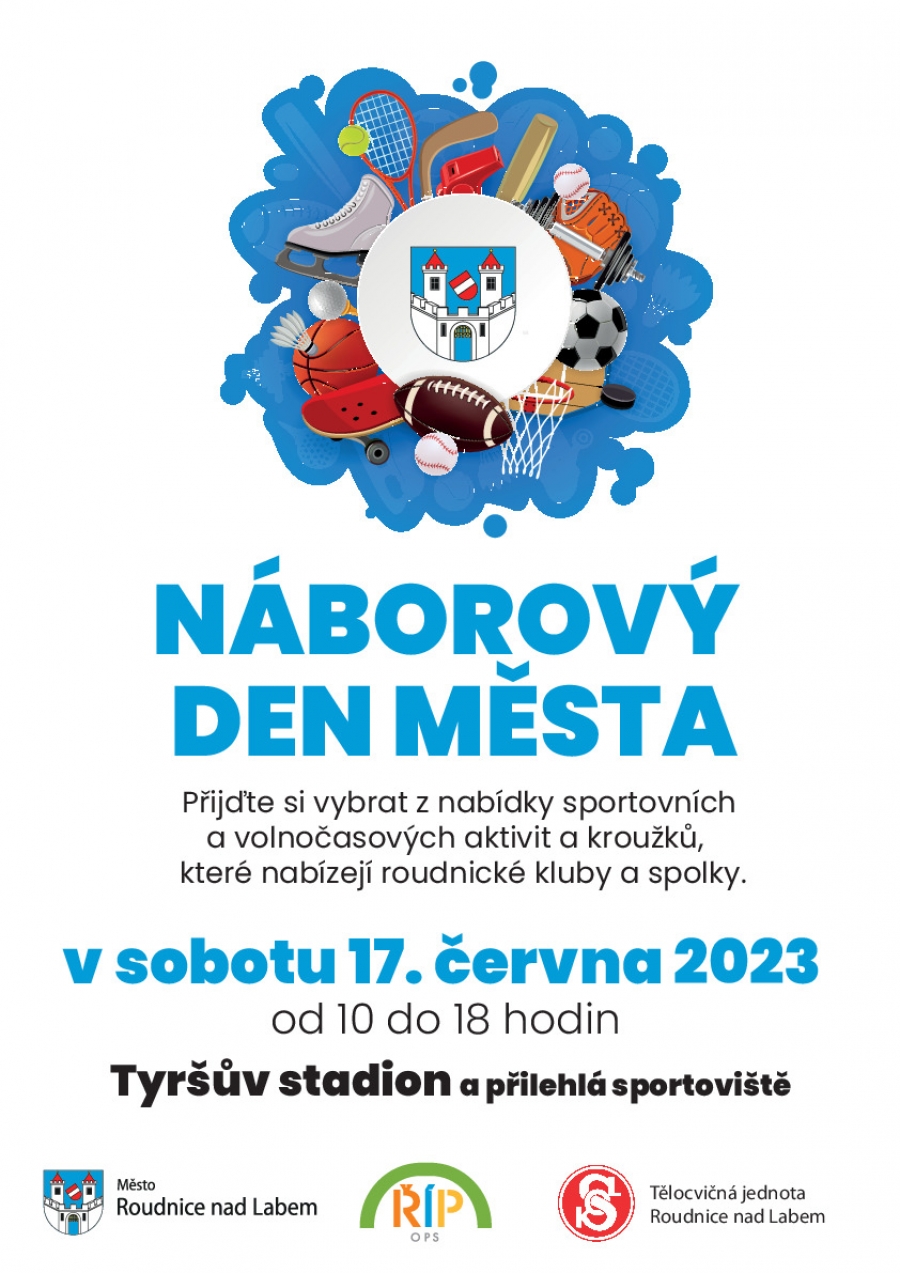 V sobotu 17. června na Tyršově stadionu v Sokolské ulici a přilehlých sportovištích proběhne první vý den Města Roudnice nad Labem. Přijďte se svými dětmi a užijte si společně den vyzkoušením mnoha různých sportovních i dalších volnočasových aktivit, nabízených místními kluby a organizacemi. Proběhne i závěrečné setkání s vyhlášením květnové výzvy „Do práce na kole“. Nechte se inspirovat a přijeďte také bezmotorově!