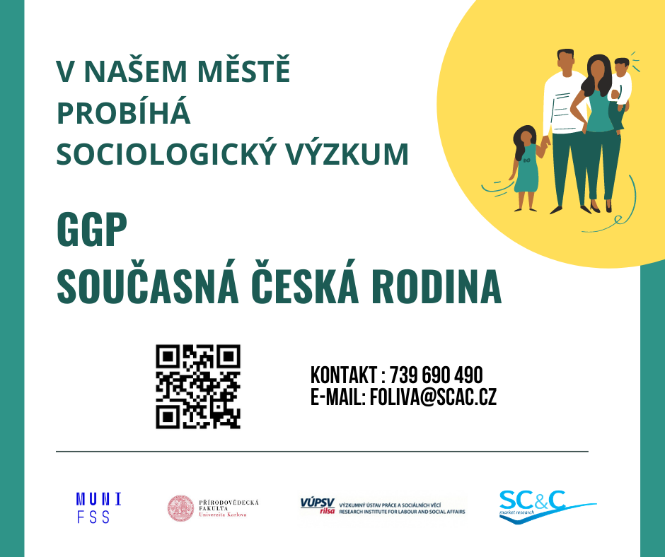 Výzkumná agentura SC&C ve spolupráci s Masarykovou univerzitou v Brně (MUNI) realizuje v těchto dnech a týdnech sběr dat mezinárodního výzkumu GGP (Generations and Gender Programme) s podtitulem Současná česká rodina. Kde v nelehkém období stojí a jak si ve společnosti vede rodina? Jakému typu lidí a rodin se daří lépe a jakému hůře? Dokážeme se poučit ze čerstvých zkušeností i z dávnější minulosti tak, aby se nám a našim rodinám v budoucnu vedlo lépe? Těmto otázkám a mnohým dalším se věnuje výzkum, do nějž bylo vybráno i několik adres v Roudnici nad Labem.