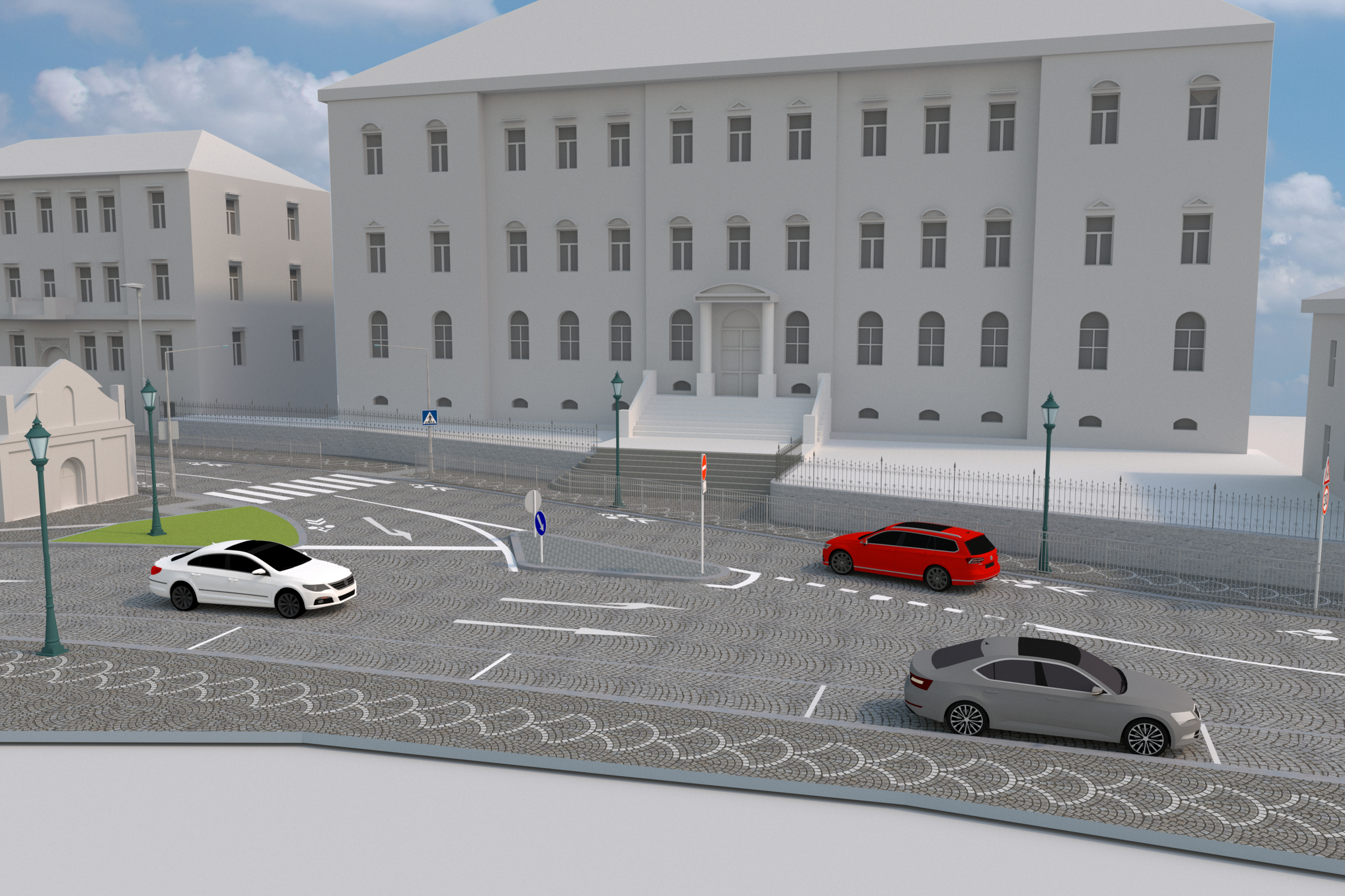 Proběhne i rekonstrukce vodovodních řadů budov městského úřadu, vedoucích z Riegrovy ulice průchodem až na Karlovo náměstí. Proto projekt navrhuje i následnou rekonstrukci těchto povrchů, opravu fasád a doplnění osvětlení. Přechod před úřadem zůstane zachován, pouze dopravní stíny budou nahrazeny tzv. vysazenými chodníkovými plochami, které umožní i případné doplnění o drobnou zeleň. V původním úseku Riegrovy ulice bude zachována i autobusová zastávka v obou směrech. Dílčích změn doznají jen nástupní plochy, které tak budou bezbariérové. V této části je v rámci projektové přípravy jednáno s majitelem sousedního areálu hotelu o rozšíření profilu chodníku posunem k přiléhající zdi. „Chodníky dostanou nové povrchy z kamenné dlažby. Protože jsme na okraji centra města, návrat k přírodnímu materiálu bude této lokalitě přeci jen slušet více než klasická betonová kostka. Vozovka si však zachová čistě asfaltový povrch,“ dodal Filip. V prostoru křižovatky s Řipskou ulicí dojde k úpravě stávajícího přechodu vysazením chodníkové plochy blíže k vozovce tak, aby na sebe lépe viděli chodci a přijíždějící vozidla. Opatření nevyhnutelně přinese drobný úbytek parkovacích stání. Zásadně však přispěje k bezpečnosti pohybu v lokalitě. Úprav se dočká i přiléhající chodníková plocha, kde budou vysazeny nové stromy a vznikne tak přívětivější veřejný prostor.