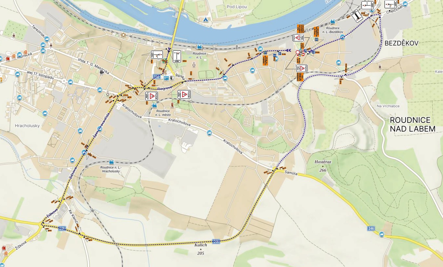 Dle vyjádření zhotovitele jsou tyto inženýrské sítě vedeny středem vozovky v hloubce 6m. Výkop proto zabere minimální plochu 2x2m a zachování průjezdu vozidel by nebylo bezpečné. Ústecký kraj se v zájmu umožnění bezproblémové dopravy žáků místních škol raději přiklonil právě k tomuto prázdninovému termínu. Oficiální objízdná trasa povede ulicemi Na Hradčanech, Michálkova, Riegrova, Jungmannova, Špindlerova, Žižkova, dále po obchvatu (silnice II/246 a III/24049) a po místní komunikaci Chelčického a Jeronýmova, v obou směrech.